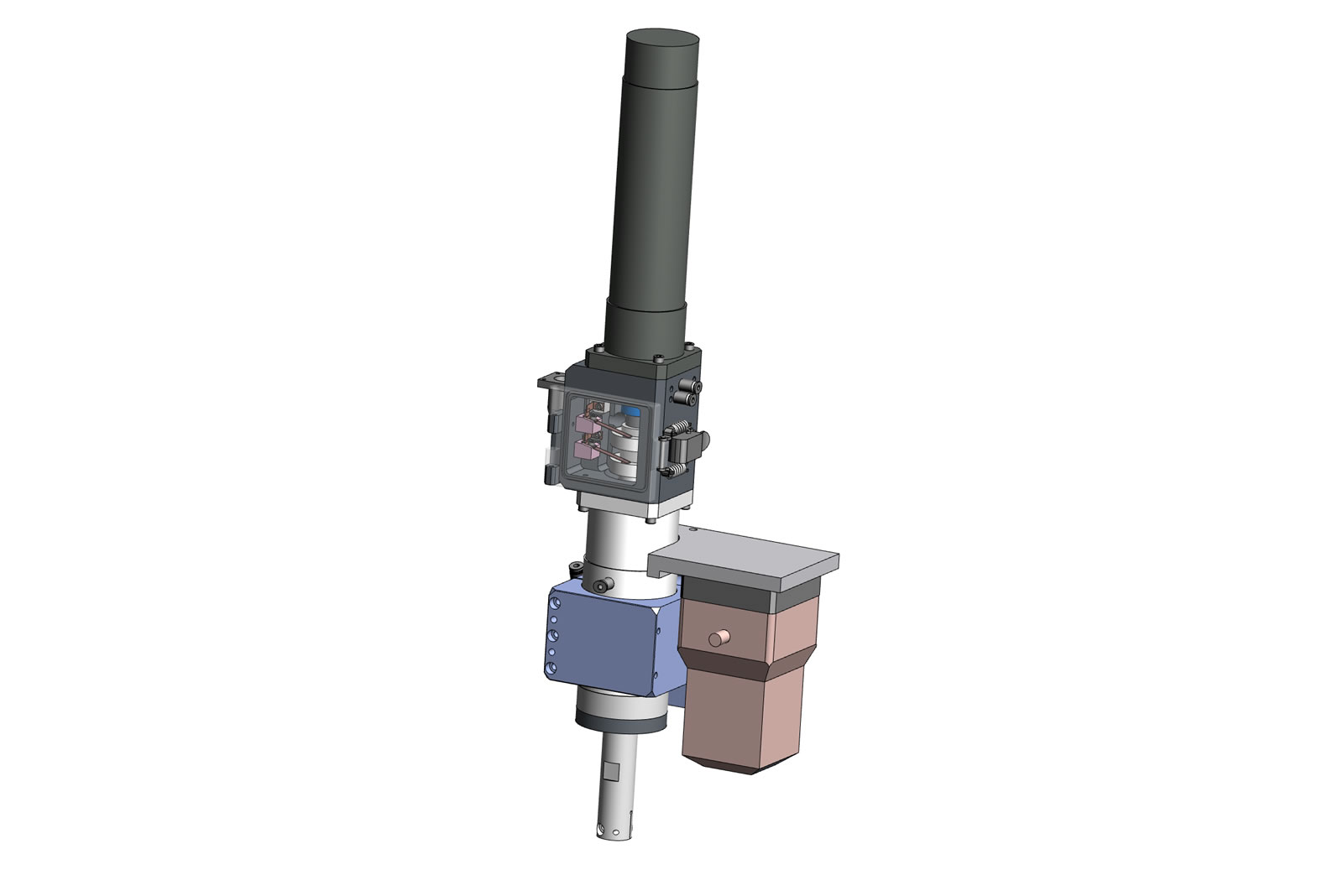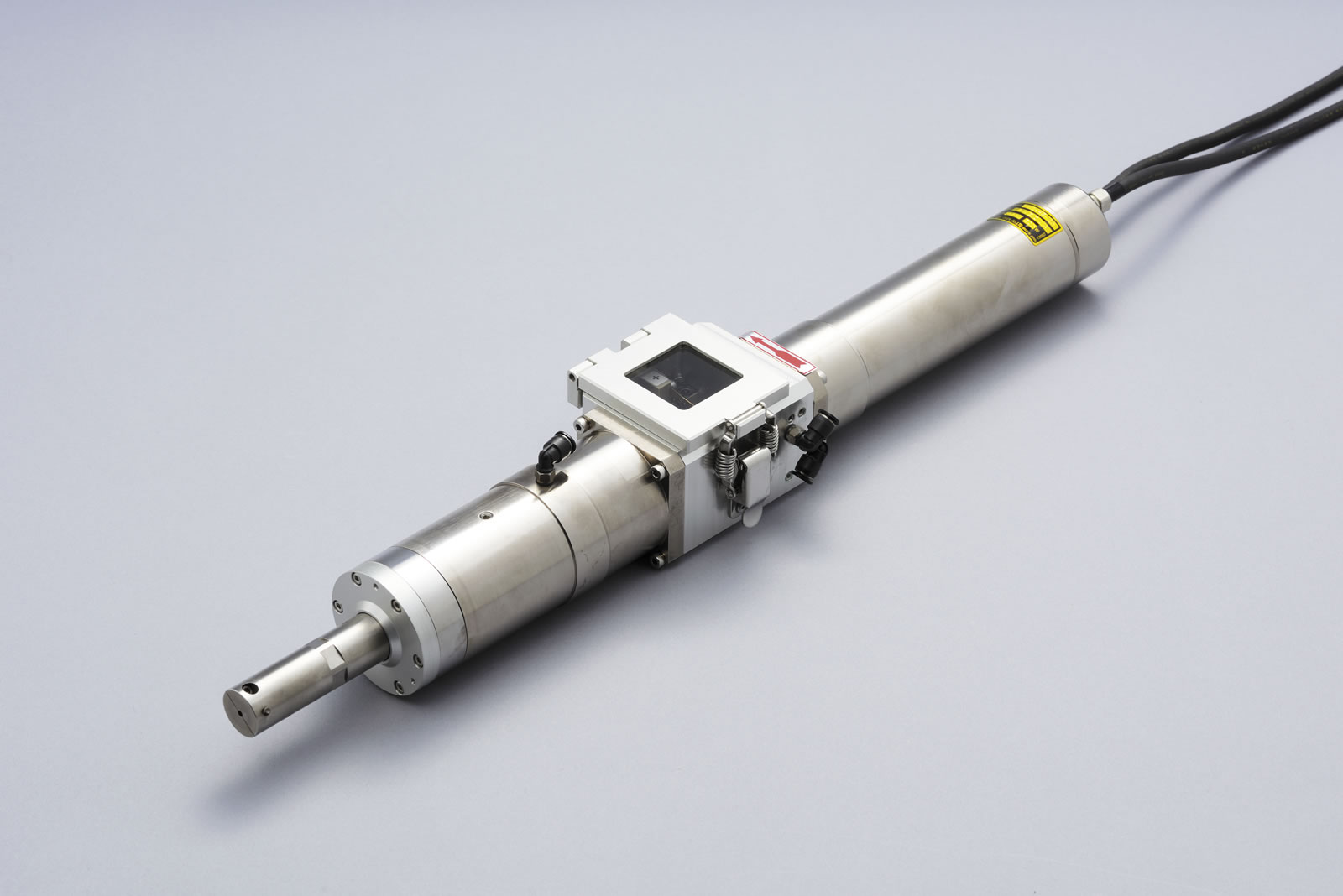 通常のスピンドル同様ダイヤモンド電着ツールを回転させると同時に、上下に振動させガラス等脆性材料を微破砕しながら加工できるスピンドルです。