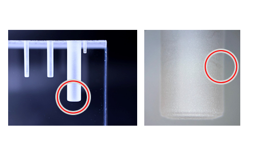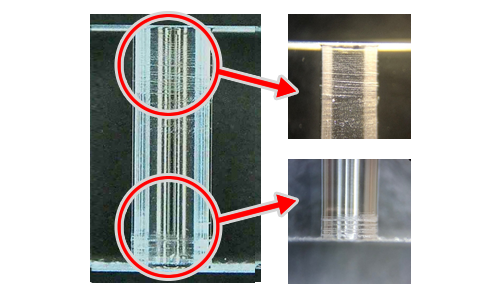 石英ガラスφ1.5ステップ加工後に同じ時間鏡面磨きを実施