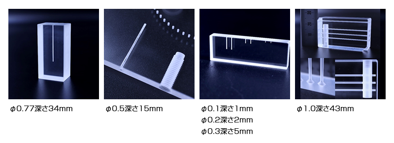 超音波スピンドルでシリコンにφ0.42×深さ12.5mm穴加工実施。